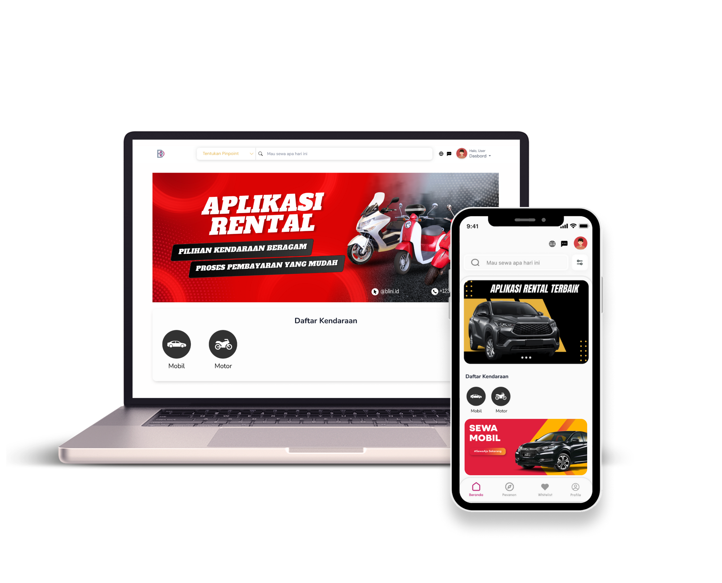 Paket Website dan Aplikasi Rental Motor Mobil, SIAP PAKAI dengan full akses, untuk custom design dan fitur silahkan hubungi admin, proses pembuatan cukup mudah, tinggal input domain yang mau di beli dan Logo brand kamu sendiri, Aplikasi siap di publish
